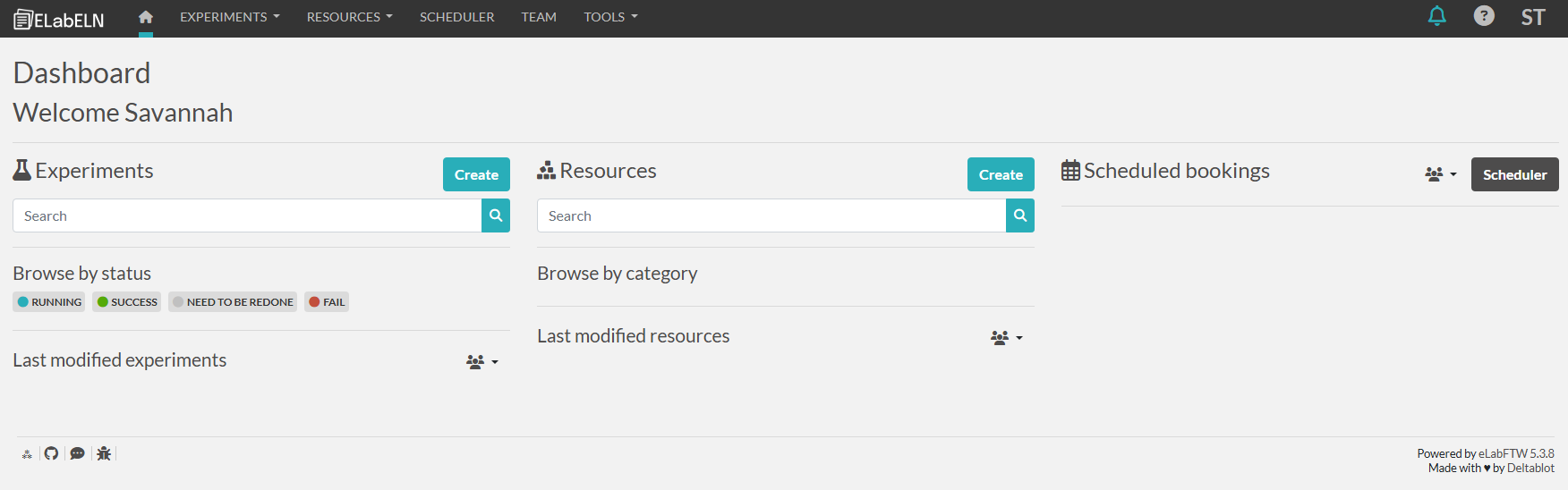 When you log into your ELabELN the first time, you'll see your dashboard, ready for setup: