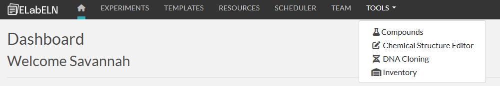 - The ELN is connected to PubChem. Compounds is where you can import compounds from PubChem to use in your resources and experiments.