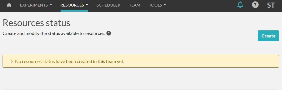 When you click Resource Status from the resources tab in the menu, you will see the Create button to add new resources.