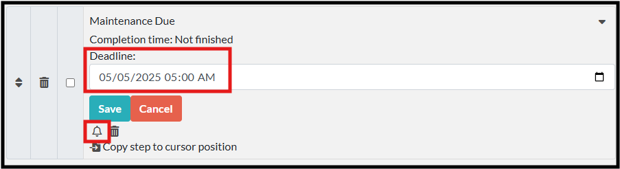 Once you set a deadline, you can edit the information to a specific day and time, as well as turn on the notification using the bell symbol.