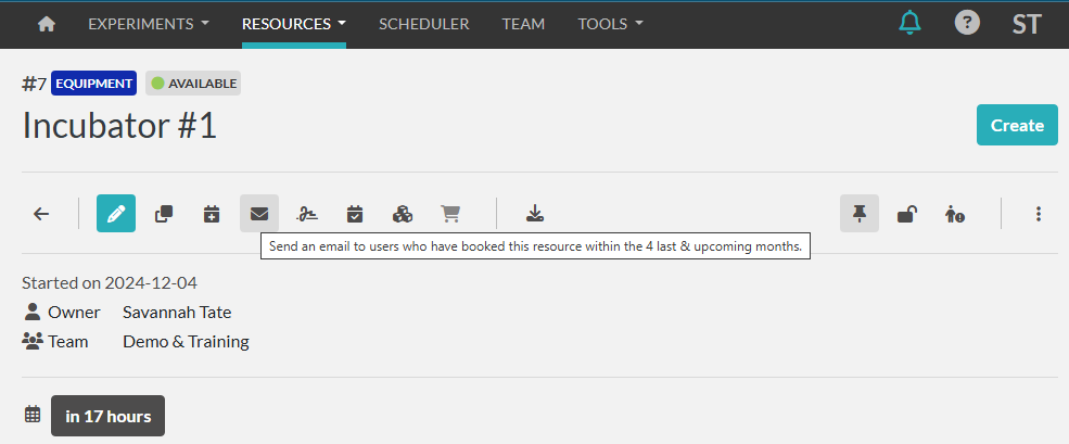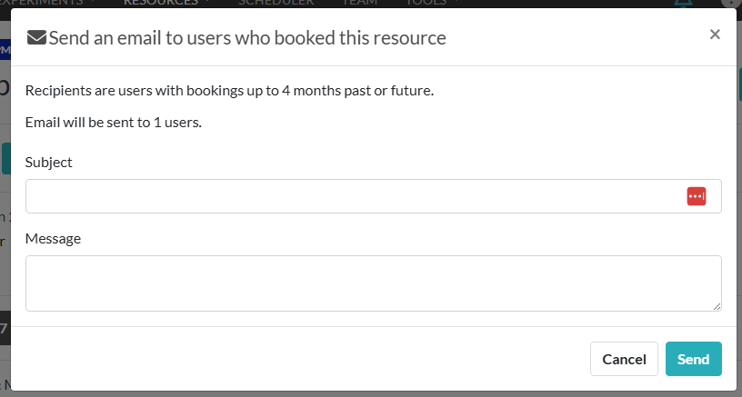 If you need to email any users that have recently scheduled a resource, you can do so from the resource page: