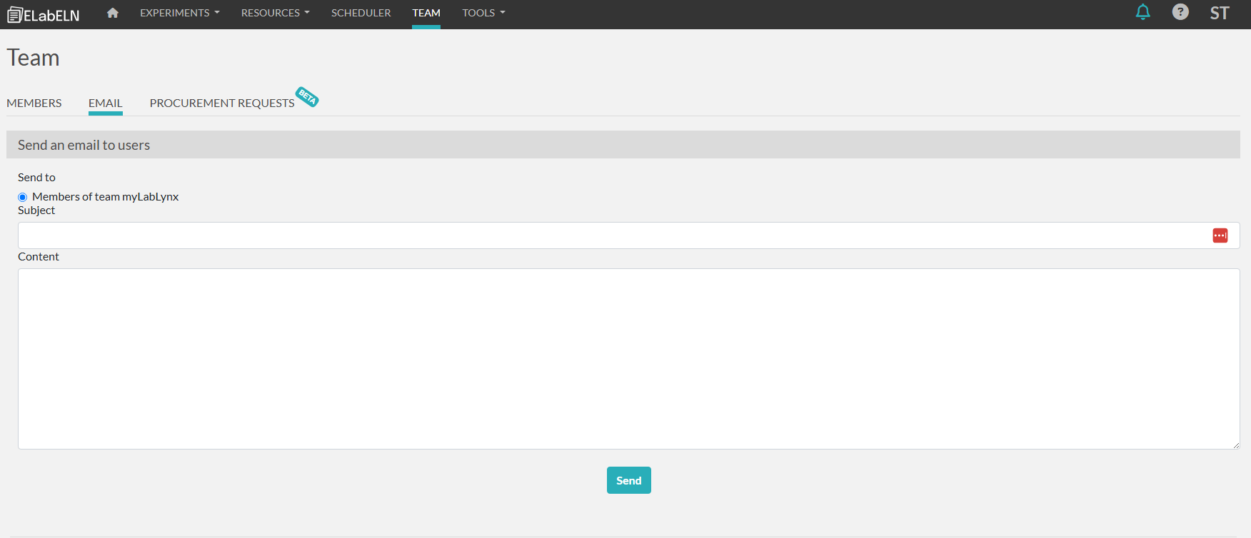 The email tab can be used to email the users in your team or your group within the team.