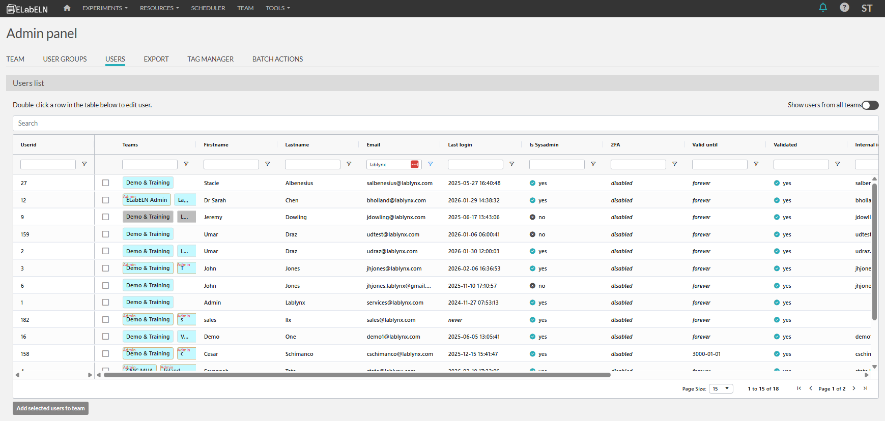 - You can filter your list of users, search for a specific user, or sort the list by different columns.